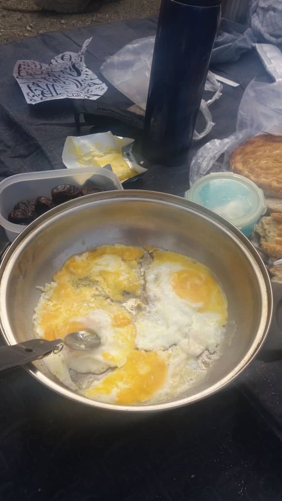 گروهمان گروه آی سی تی بود. دو نفر آی تی و یکی هم کنترل. دنبال نانوایی گشتیم و در نهایت از یک نان بربری به دست آدرس نانوایی را گرفتیم و دو عدد بربری خشخاشی گرم گرفتیم. گویا قابلمه کم بود. بخاطر نزدیکی به منزل، برگشتیم و یک عدد قابلمه هم به وسایل همراهمان اضافه کردیم. یکی از دوستان که از ما حرفه ای تر بود، تدارک صبحانه را هم دیده بود. کوله اش فقط قابلمه کم داشت.